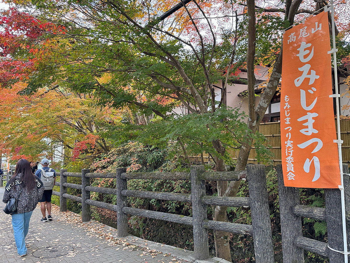 【秋・冬の高尾山の写真投稿呼びかけ】高尾山内には「高尾山もみじまつり」の旗が掲げられている