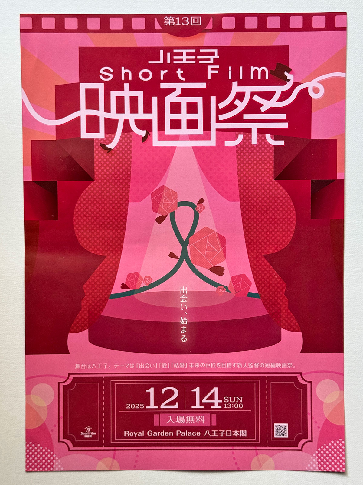 「八王子Short Film(ショートフィルム)映画祭」が12月14日、八王子・御殿山の結婚式場「八王子日本閣」(八王子市鑓水)で行われる。