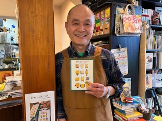 イベントに合わせたオリジナルグッズも販売。風呂敷、コーヒーのドリップバッグなどのほか、エレベーターの操作盤や表示機などを手がける島田電機製作所(大和田3)とコラボしてキーホルダーを作った。