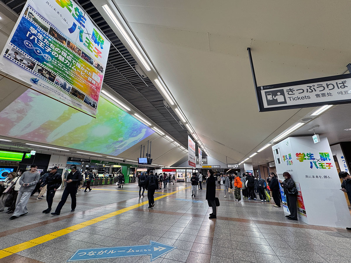 主催はJR東日本八王子支社。大学コンソーシアム八王子(八王子市旭町)が協力する同企画では、八王子駅改札外の天井部分をスクリーンとして使い、学生が制作した映像を11月14日から投影している。