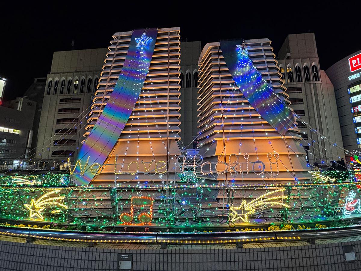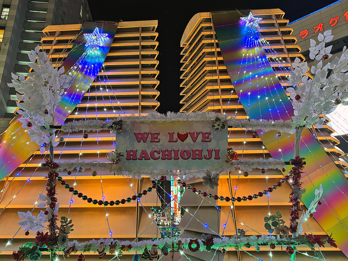 【八王子駅前に冬恒例イルミネーション】八王子駅側の装飾の夜の様子