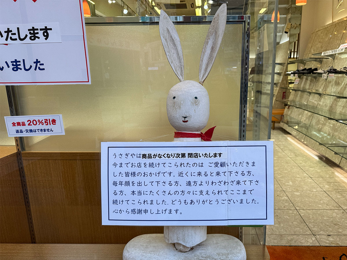 【八王子の婦人靴店「うさぎや」が閉店へ】「商品がなくなり次第 閉店」とメッセージを差し替えた