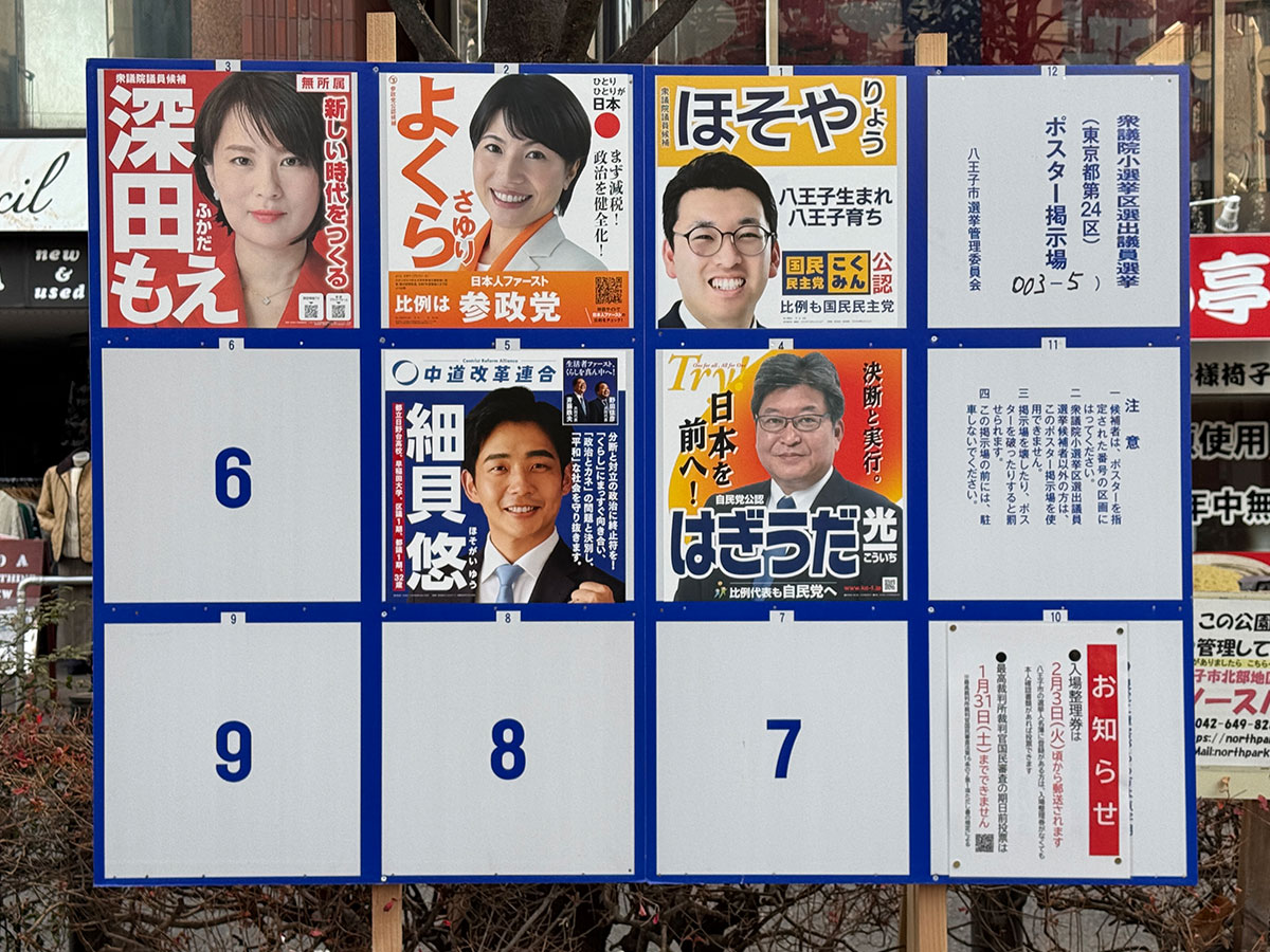 衆議院選挙公示 中町公園には選挙ポスター掲示板