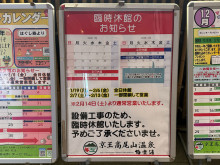 日帰り温浴施設「京王高尾山温泉/極楽湯」(八王子市高尾町)が1月19日、休館に入った。