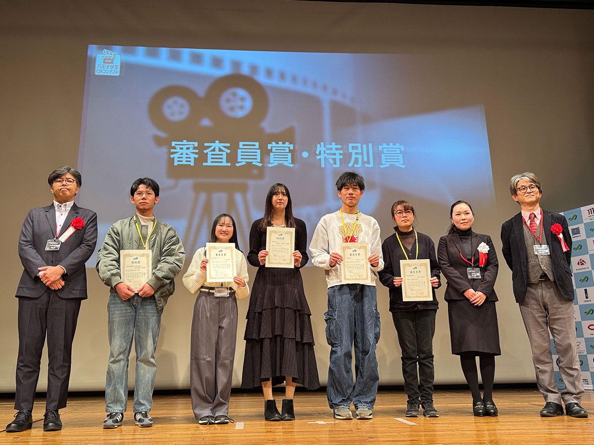 【「八王子学生CMコンテスト」、多摩美大学院生に最優秀賞】審査員賞・特別賞を受賞した皆さんと審査員