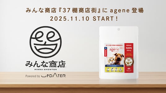 株式会社阿部養庵堂薬品(所在地:東京都足立区、代表取締役:阿部朋孝)は、愛犬・愛猫専用NMN*?配合サプリメント『agene(エイジーン)』を、株式会社UPDATER(本社:東京都世田谷区、代表取締役:大石英司)が運営する「みんな商店」にて、2025年11月10日(月)より販売開始いたします。