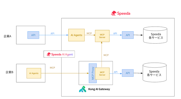 スピーダ事業では、従来、各APIとAIエージェントを直接接続してエージェント開発を進めていました。しかし、AIエージェントとの接続ニーズが急速に拡大したことで、50以上のAPIに対して個別のMCPサーバまたはエンドポイント定義を用意・運用する必要が生じました。API単位でMCPサーバを構築・保守する方法は、保守性や人員リソース、コストの面で非効率でした。MCPサーバ構築自体は技術的に難しくないものの、非機能的な作業が増え、開発者が本来注力すべきAIエージェントのUX設計や機能強化に十分なリソースを割けなくなっていました。こうした背景から、MCP対応を標準化し、開発者が効率的にオフロードできる仕組みの整備が重要な技術課題として浮上しました。
