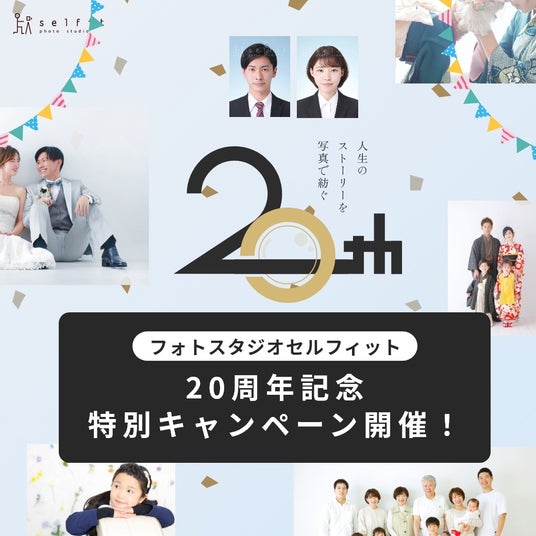フォトスタジオセルフィットを運営する株式会社セルフィット(本社:大阪市北区、代表取締役:谷本千尋)は、2026年4月1日に創業20周年を迎えます。これまでのご愛顧への感謝を込め、オリジナルグッズのプレゼントや特別キャンペーンなど、周年記念企画を実施いたします。