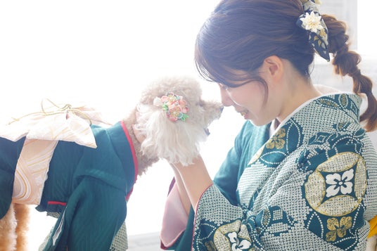 また、オリジナル着物の企画・制作にも注力しており、七五三・成人振袖・卒業袴など、人生の節目を彩る特別なシーンでご利用いただいています。ご家族皆さまでお楽しみいただける「お揃いコーデ」や「リンクコーデ」も大変好評で、晴れの日をより一層華やかに、格調高く演出いたします。さらに、2025年9月には犬用着物をリリースし、同年のペット撮影では100件を超えるご利用をいただくなど、新たな市場開拓にも成功しました。