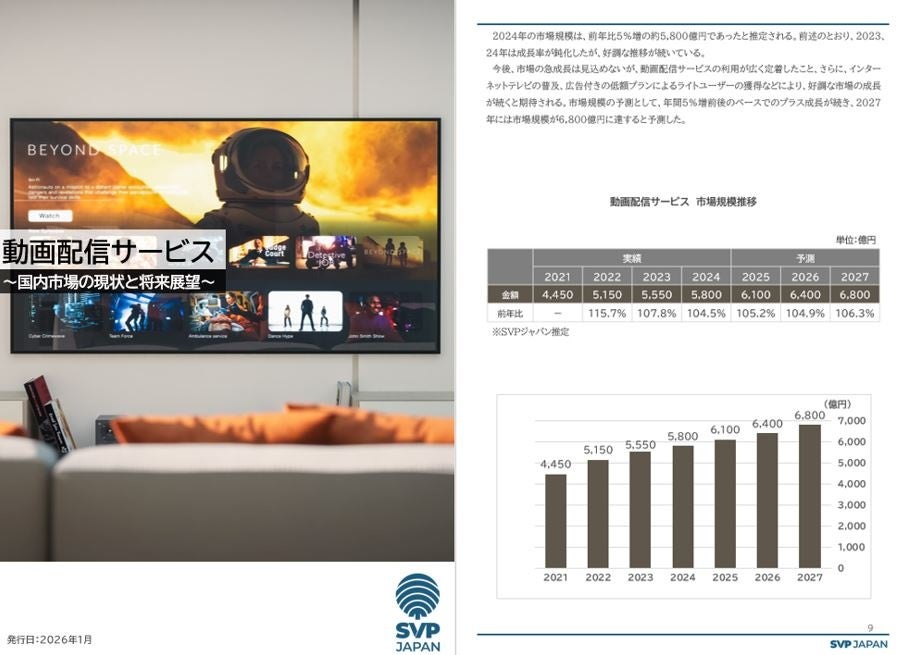 会員制マーケットリサーチサービスを提供している、株式会社SVPジャパン(本社:東京都中央区、代表取締役社長:橋本 雅、以下「SVPジャパン」)は、本日、SVP注目市場分析レポート「動画配信サービス-国内市場の現状と将来展望-」を、会員企業向けに公開いたしました。