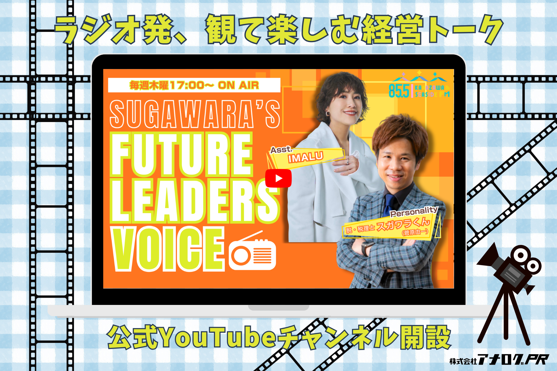 「企業の情報と印象をデザインする」をコンセプトに掲げ、メディアとWEBとオフラインを融合させたマーケティング戦略を提供する、株式会社アナログPR(本社:東京都港区、代表取締役:松浦啓介)は、2026年1月8日(木)より放送を開始したラジオ番組「脱・税理士スガワラくんの Future Leaders Voice」と連動し、同番組の公式YouTubeチャンネル(URL:https://www.youtube.com/@sugawara-FLVoice)を開設いたしました。ラジオで展開される経営者たちのリアルな対話を、映像でも体験できる新たな発信の場として展開してまいります。