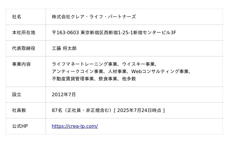 リリース発行企業:株式会社クレア・ライフ・パートナーズ