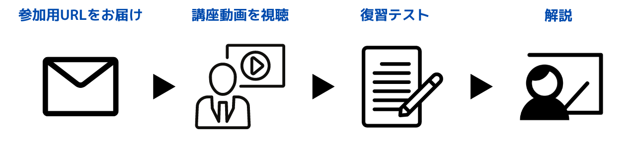 本講座は「講義動画+復習テスト」で構成されています。動画で知識を学んだ後に、復習テストを行いますので、着実に理解を深めていただくことができます。
