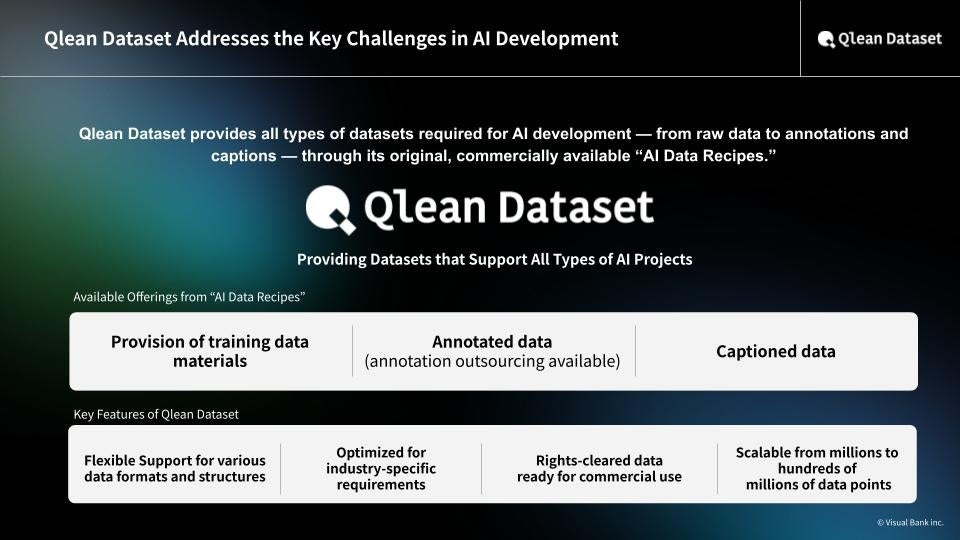 Qlean Dataset is a commercial-use-ready AI training data solution provided by Amana Images Inc., a subsidiary of Visual Bank Inc.